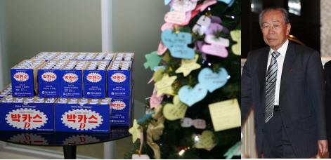 박카스의 수퍼 판매를 둘러싸고 물량부족과 약사들의 반발이 거세지고 있는 가운데 동아제약 강신호 회장이 ‘솔로몬의 해법’을 내놓고 회심의 미소를 짓고 있다. 중단됐던 박카스F를 재생산해 물량부족을 해소함과 동시에 유통 이원화로 성난 약사들을 달래는 묘수를 발휘한 것.