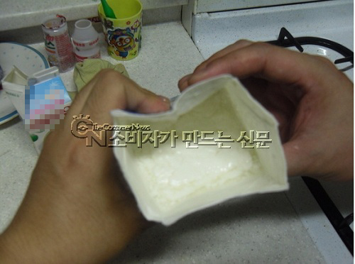 우유팩 안을 들여다 본 뒤에야 내용물이 상했다는 사실을 확인할 수 있었다는 구 씨. 순두부처럼 응고된 우유가 팩 안에 가득 들어있었다는 게 그의 설명이다.