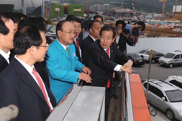 여수엑스포 준비상황을 점검하기 위해 19일 여수를 찾은 한나라당 홍준표 대표가 홍보관에서 2012여수세계엑스포에 대한 설명을 듣고 이 같이 밝혔다.