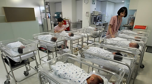 엄청난 확률을 뚫고 태어난 다섯 쌍둥이의 아빠가 된 장(張·25)씨는 “임신기간 내내 병원치료를 함께 다니느라 직장도 잃었지만, 아이들과 산모 모두 무사해 매우 기쁘다.”면서 “가족을 생각해 더 열심히 일하겠다.”고 말했다. (사진은 한국 신생아실의 모습-연합뉴스)
