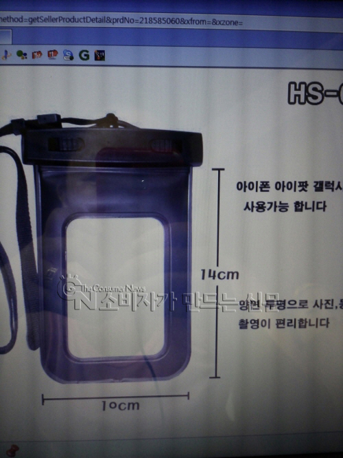 신 씨는 “스마트폰 전용 방수팩이라고 해서 믿고 구입했는데 이 때문에 고가의 스마트폰이 고장나 무척 당황스럽다”고 말했다.