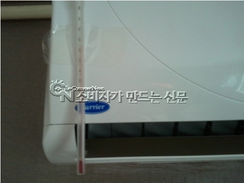 그러나 설치된 에어컨은 제대로 작동되지 않았다. 45분이나 가동시켜도 실내 온도는 전혀 내려갈 기미를 보이지 않았다는 게 유 씨의 설명.