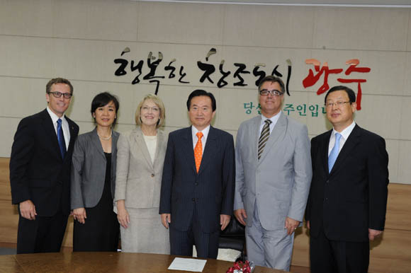 광주시의 자매도시인 미국 텍사스주 샌안토니오 시의 엘리자베스 코스텔로 국제국장, 페릭스 패드론 문화국장, 카일번스 FTA 회장, 상공회의소의 캐서린 김 등 4명이 23일 강운태 광주시장을 방문했다.