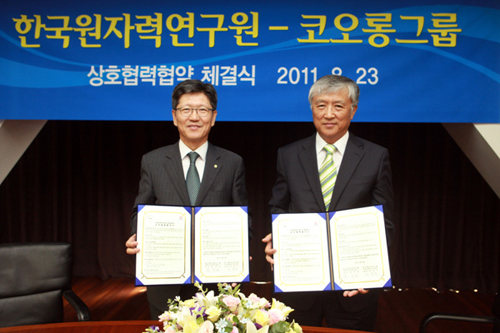 김남수 코오롱 사장과 정연호 한국원자력연구원장이 참석한 가운데 진행된 체결식에서 양 기관은 공동연구, 인력교류, 연구 시설 및 장비 등의 공동 활용, 학술, 기술 및 정보 교류 등을 통해 ▲방사선 멸균 기술을 이용한 특수 식품 제조 기술 ▲공업용 기능성 신소재 ▲돌연변이 신품종 등 방사선 융합 기술 및 산업 발전을 위해 다양한 분야에서 협력하기로 합의했다.