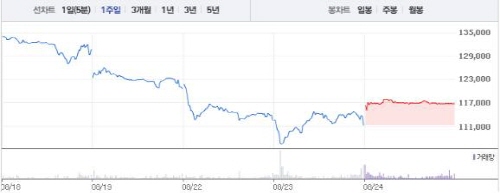 GS홈쇼핑은 24일 전일 대비 5.04% 오른 11만6천800원에 장을 마감했다.