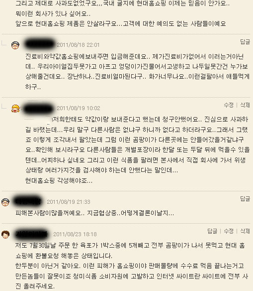 김 씨는 곧바로 현대홈쇼핑 측에 항의하자 '제품 변질의 문제는 제조업체의 책임'이라며 뒤로 물러섰다.
