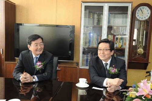 ▲ 시승행사에 참석한 국민연금공단 전광우 이사장(좌)과 민주당 박은수 국회의원(우)