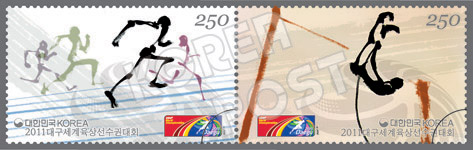 기념우표는 육상 종목 중 달리기와 장대높이뛰기를 수묵화의 느낌을 살려 크로키 기법으로 디자인했으며, 대구세계육상경기대회의 로고를 담았다. 다음 우표는 ‘2011 대장경천년세계문화축전 기념우표’ 1종으로 9월 23일 나온다.