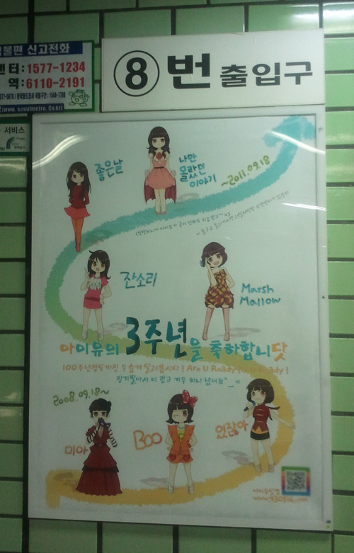 지하철 삼성역에 붙어 있는 이 광고는 '아이유의 3주년을 축하합니다'라며 아이유의 1집 앨범 부터 지금까지의 활동곡과 아이유의 변화하는 모습을 캐릭터로 그렸다.