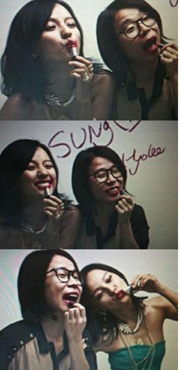 공개된 사진 속 이효리는 거울 앞에서 친구와 함께 재미있는 듯 립스틱을 바르고 있다.