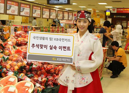 이마트에서는 내달 11일까지 KB국민카드(KB국민비씨카드 제외)로 추석 선물세트 구매 시 이용금액 대별 최대 10% 상품권을 제공한다. 자세한 행사 내용은 홈페이지와 콜센터(☎1588-1688)를 통해 확인하면 된다.