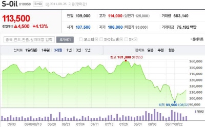 대표 정유주인 SK이노베이션과 함께 S-Oil(에쓰오일)도 한 달 전 15만9천원이던 주가가 40.6% 하락해 10만원 밑으로 추락하기도 했다.