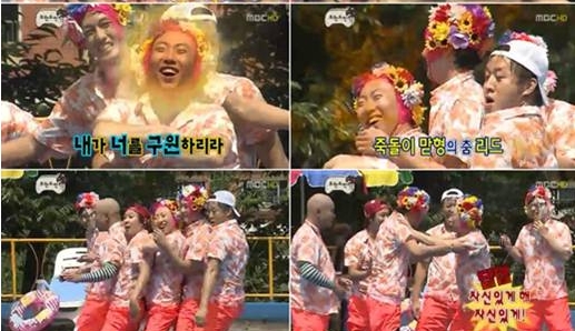 이에 박명수는 소지섭과 함께 불장난 댄스를 선보여 멤버들의 큰 호응을 이끌어냈다.