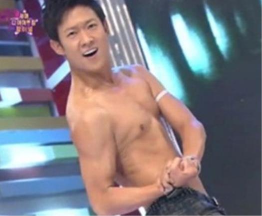 또한 천명훈은 뱃살이 줄어든 모습뿐 아니라 어깨 근육과 복근을 과시해 출연진들의 환호성과 박수를 받았다.(사진=SBS 스타킹 캡처)