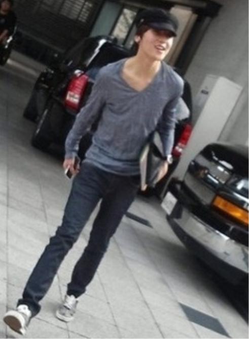 사진 속 강승윤은 회색 티셔츠와 검은색 스키니진으로 캐주얼한 스타일을 통해 마른 몸매를 드러냈다.