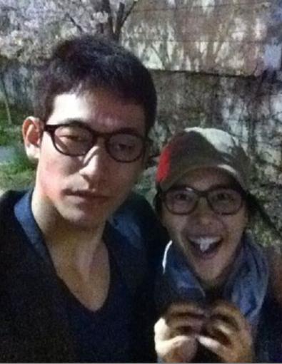 사진에서 백지영과 정석원은 나란히 커플 안경을 쓰고 있다.