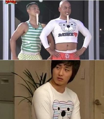 29일 인터넷에는 거침없이 하이킥에서 정일우가 입은 옷과 무한도전에서 길이 입고 나온 옷을 캡처한 사진이 올라왔다.