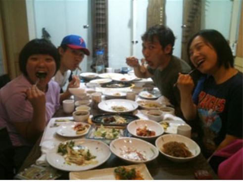 공개된 사진은‘헬스걸’들과 이승윤이 푸짐하게 차려진 밥상 앞에서 행복해 하는 사진이다.