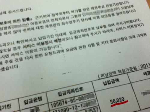 8일 경기도 부천에 사는 김 모(여.35세)씨에 따르면 그는 최근 채권추심업체로부터 5만6천20원의 미납요금을 납부하라는 안내서를 받았다. 내용을 확인한 후에야 자신이 가입한 적도 없는 스카이라이프의 이용요금이 연체되고 있었다는 사실을 알게 됐다는 김 씨.