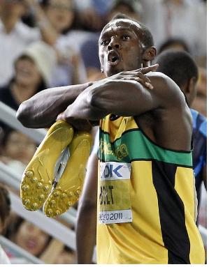 우사인 볼트는 지난 2일 오후 남자 200m 준결승에서 조 1위에 오른 후 갑자기 자신의 신발을 벗어 던졌다. 관중석으로 날아간 우사인 볼트의 오른쪽 신발은 관중석 2층으로, 왼쪽 신발은 1층 관중석에 떨어졌다.