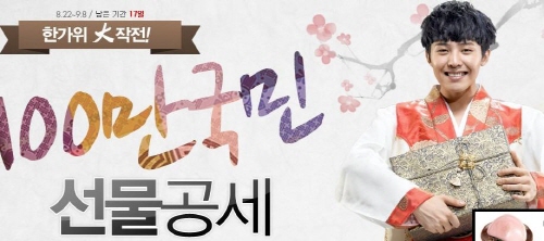 ‘한가위 대 작전, 100만 국민 선물공세’ 이벤트는 해당 페이지를 방문하거나 제품을 구매한 후 모은 송편으로 각종 추석선물세트, 쇼핑지원금 등 경품과 교환하는 행사다.