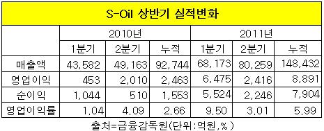 한편 S-Oil은 2006년 14조6천억원이던 매출액을 5년만에 20조5천억원(2010년)으로 불렸다. 자산총액도 6조7천억원에서 5년만에 10조원으로 늘어났다.