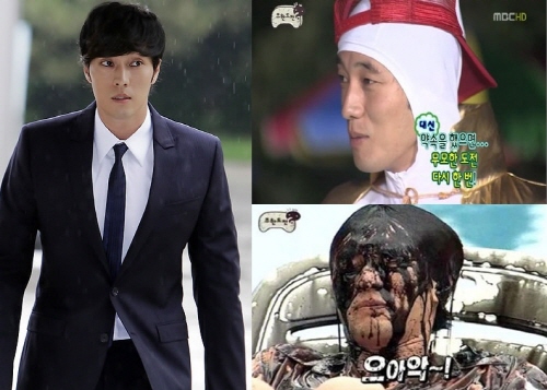 그는 2인 1조 먹물 풍선 테이프 떼기 게임을 하던 중 얼굴에 먹물을 뒤집어쓰며 망가진 모습을 보여주며 평소 배우로서는 보여주지 못했던 인간미(?)를 발산했다.