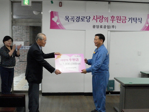 한편, 이번 옥곡경로당 개보수사업은 광양로공업(주) 김덕재 대표이사가 지난 8월 19일 옥곡면사무소 주민사랑방에서 사랑나눔복지재단에 환경개선사업비로 지정 기탁한 2백만원으로 실시했다.