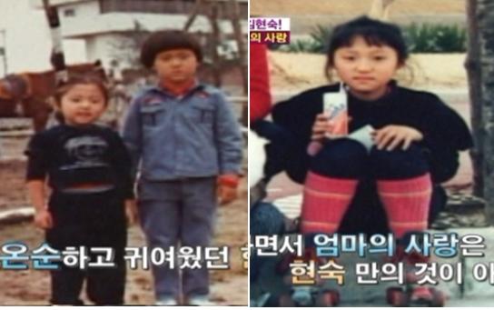 김현숙의 어머니는 김현숙의 어린시절 사진을 공개하면서 “현숙이가 어려서는 정말 똑똑하고 청순가련한 스타일이었다”고 밝혔다.