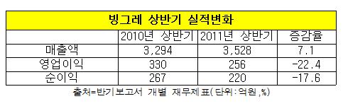 6일 금융감독원 전자 공시자료에 따르면 빙그레의 올 상반기 매출액은 3천528억원으로 전년 동기 대비 7.1% 증가했다. 그러나 영업이익과 순이익은 모두 두 자릿수 감소하며 각각 256억원, 220억원에 그쳤다.