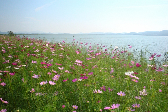 가을의 대표적인 꽃 코스모스! 고흥만에 가면 코스모스가 만개하여 가을이 성큼 다가온 것을 실감할 수 있으며 보기만 해도 어릴 적 동무들과 정답게 거닐던 잊혀져간 아름다운 추억이 떠오를 듯 활짝 피었다.