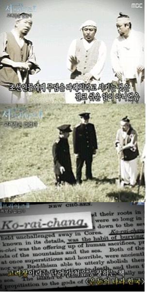 이는 당시 대한매일신보 1908년 11월11일자 기사에 "근일에 일인들이 고려장을 파고 사기를 내어가는 고로 온전한 고총이 없다"는 글이 실려 이 사실을 뒷받침해주고 있다. (사진=MBC 방송캡처)