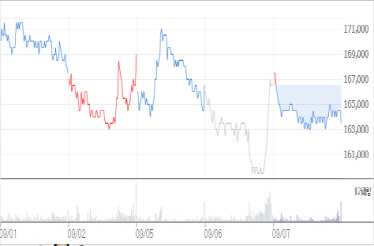 최근 주가 흐름은 올랐다, 내렸다를 반복하면서 보합세를 보이고 있다. 7일 종가는 16만3천500원이다.