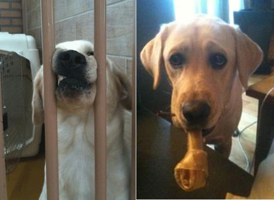정재형이 공개한 축복이의 근황 사진은 축복이가 창살 사이로 얼굴을 내밀고 싶어하는 모습이 담겨있다.