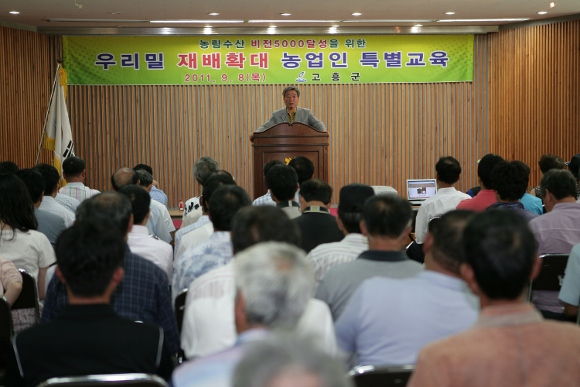 고흥군(군수 박병종)은 8일 밀재배 희망농가와 이모작 집단 재배단지 권역별 농업인 400여명을 대상으로 팔영농협과 흥양농협 회의실에서 우리밀 재배확대 특별교육을 실시했다.