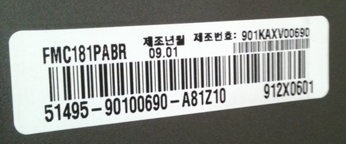 ▲ 제품 광고에는 정품시리얼번호(FC181PABR)를 표시(위)했으나 실제 설치된 모델의 시리얼번호는 FMC181PABR로, 모형에 가까운 진열용상품인 것으로 나타났다.