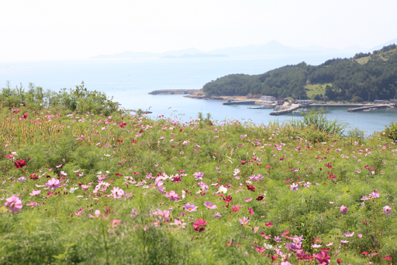 슬로시티로 유명한 완도군 청산도에는 걷는 길마다 코스모스가 활짝피어 완전한 가을이 왔음을 알리고 있다.