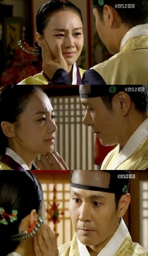 경혜는 한성부로 떠나려는 정종의 옷자락을 부여잡고 눈물을 보였고 정종은 경혜의 얼굴을 어루만지며 아무 말 없이 그녀를 달랬다.