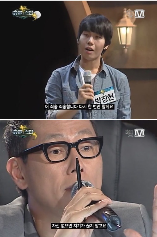 Mnet '슈퍼스타K3(이하 슈스케3)'에서 주목을 받았던 박장현이 가사 실수로 탈락 위기에 처했다.