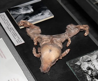 특히, 누운 모습도 보통 강아지가 그러하듯 옆으로 눕거나 엎드린 자세가 아닌 사람처럼 배를 드러내놓고 하늘을 향했다. 이 동물은 태어나자마자 죽은 것으로 전해졌다.