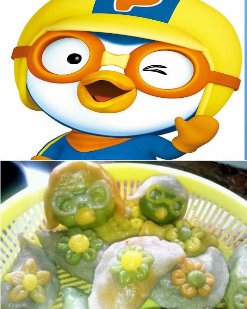 사진 속 송편은 뽀로로 모양을 하고 있으며 화려한 빛깔도 눈에 띈다.