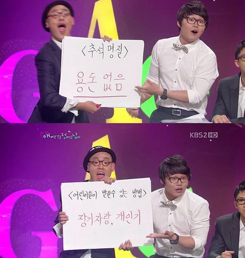 또한 "명절 용돈 몇 살까지 줘야하냐"는 질문에 "초등학생 만원, 중학생 2만원, 고등학생 3만원"이라고 한 후, 바로 "사실 추석 명절 용돈은 없다"며 앞의 정의를 뒤집었다.