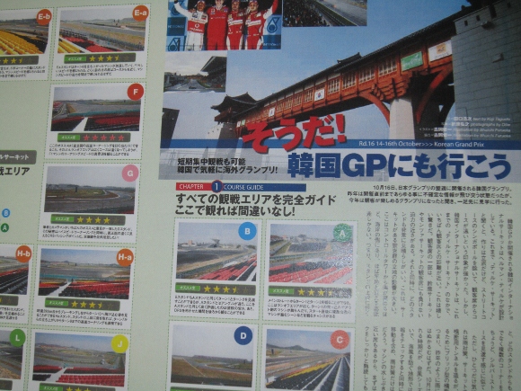 일본 최대 F1전문잡지가 ‘그렇다! 한국GP에 가자’라는 제목의 기사에서 영암F1경주장을 “이탈리아 몬자, 일본 스즈카에 뒤지지 않는 박력 있는 경주장”이라고 극찬해 화제다.