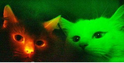 이 형광 고양이는 변형된 유전자를 쉽게 식별하고 그 발전 과정을 추적하기 위해 해파리 유전자를 삽입해 어둠 속에서도 초록 빛을 발하는 특징을 가진다. (사진=연합뉴스, 기사내용과 관련없음)
