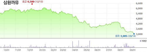 실제로 삼환까뮤의 올 반기보고서에 따르면 당장 현금화 할 수 있는 현금성자산과 유동금융자산은 20억원에도 미치지 못한 실정이다.