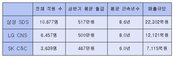 직원 월급은 상반기 매출순위와 같은 삼성SDS→LG CNS→SK C&C순이었다.