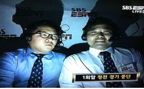 이에 경기를 생중계한 SBS ESPN 중계진은 휴대전화 불빛으로 중계를 이어나가 방송에서 중계자들이 파란 색으로 나와 이 모습이 마치 납량특집을 연상케 했다.