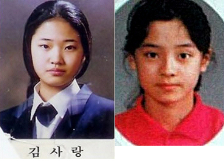 공개된 졸업사진 속의 김사랑은 부스스한 단발머리에 까무잡잡한 피부와 쌍꺼풀 없는 눈 등 미스코리아 출신의 화려한 용모를 찾을 길이 없다. 반면 송지효의 초등학교시절 사진은 특유의 작은 얼굴과 또렷한 이목구비가 그대로 드러났다.