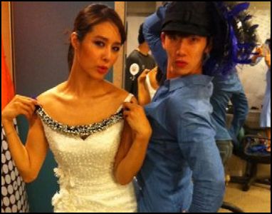 옥주현은 지난 16일 자신의 트위터에 ''아가씨와 건달들' 보러온 지인들의 필수 코스! 2막 첫 곡 때 쓰는 저 느낌 있는 장신구로 느낌 있는 방문샷 찍기! 정말 느낌있다 권아!'라는 글과 함께 한장의 사진을 올렸다.