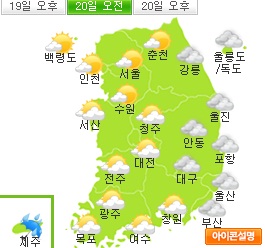 기상청에 따르면 19일 대륙 고기압의 영향으로 찬 공기가 한반도에 영향을 미치고 있다.